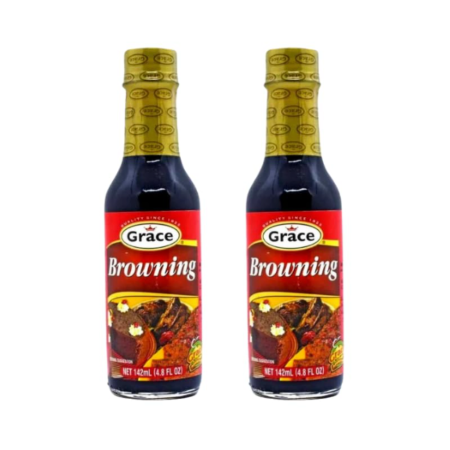 Grace Browning is a pantry essential in every Caribbean kitchen. This thick, dark liquid adds rich color and a hint of depth to your stews, roasts, sauces, and most famously — Jamaican fruit cake and holiday black cake.